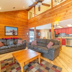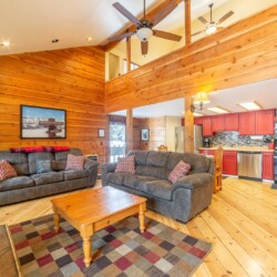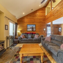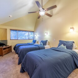 Immediatly off of the living room is the downstairs bedroom, which contains a queen size bed, TV with a Firestick, and a full size wrap around bathroom that is also accessible via the kitchen/living room. The upstairs loft serves as the second bedbroom with 3 twin size beds, a full bath, and a large walk in closet. In addition, the loft contains a new stackable interior washer and dryer for laundry.