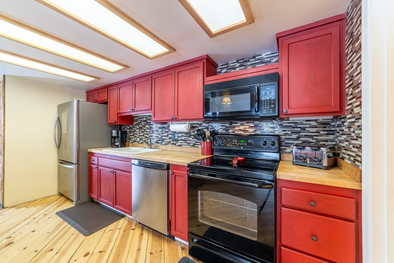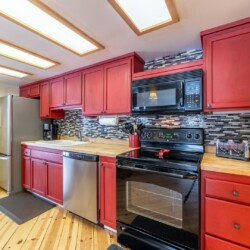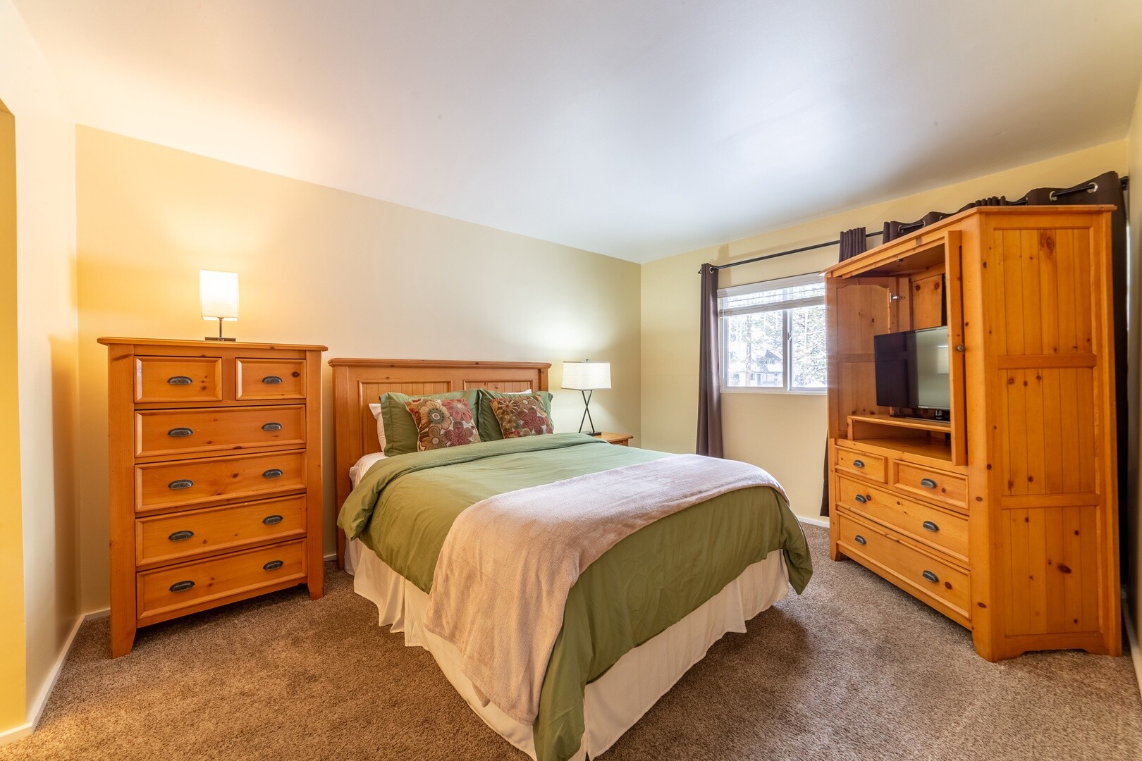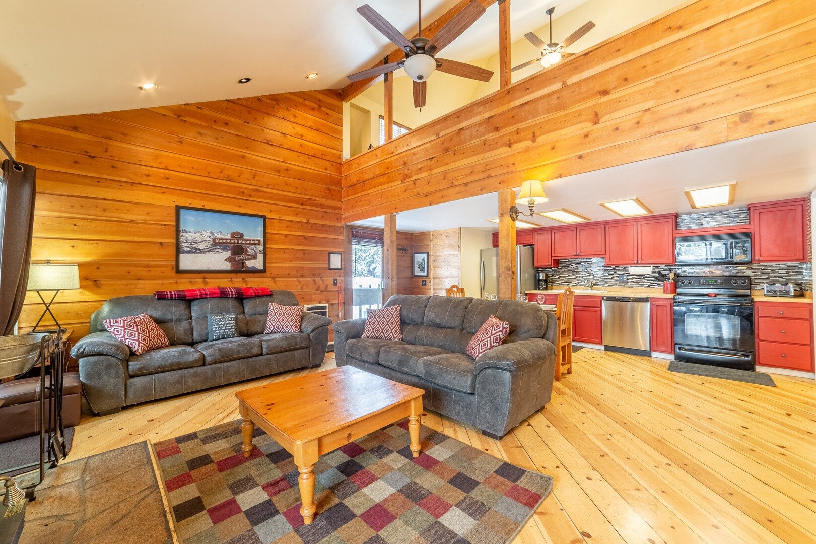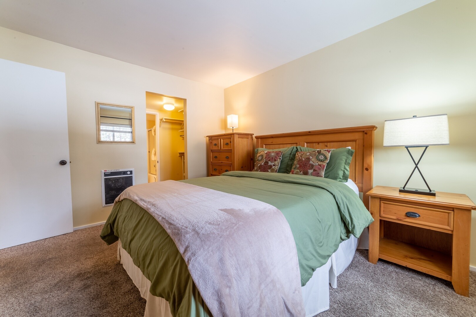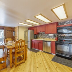 This corner unit is located on the second floor (full flight of stairs to front door) and has an open and spacious floor plan. The condo is equipped with a fully stocked kitchen for your cooking convience. The living room has two full size couches, electric wall heater and a wood burning stove. In the warmer months, enjoy the patio located immediately off of the living room. In addition, the free wifi service and large Smart TV support your streaming needs.