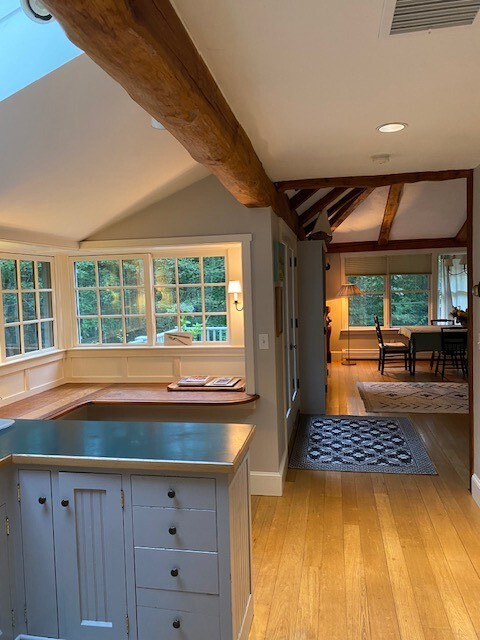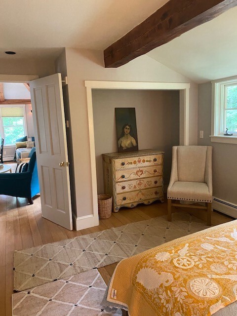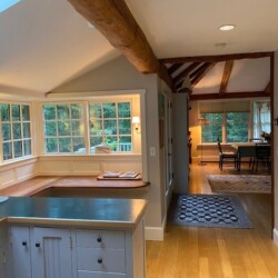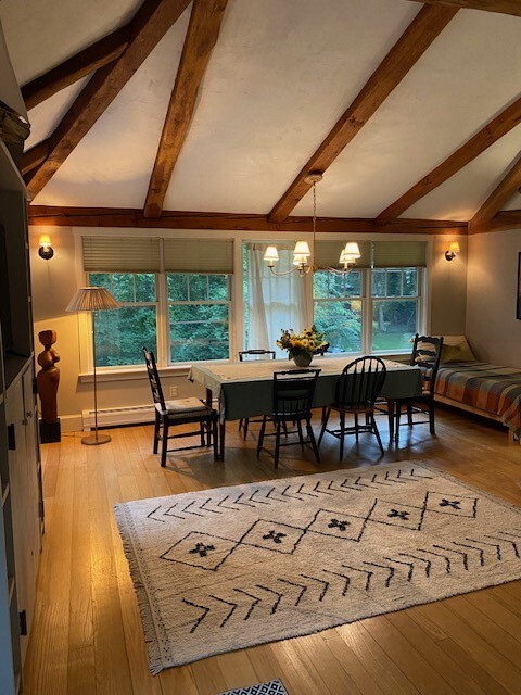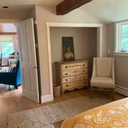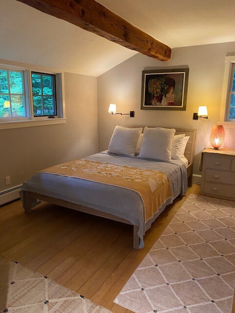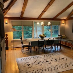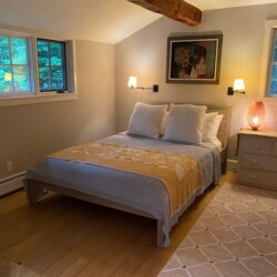 On Martha’s Vineyard, a short drive off the timeless Middle Road is a small post and beam home perfect for two. The bedroom has a queen bed, the bathroom includes a tub with shower as well as one outdoors, delightful in season. Close to glorious beaches, farm markets and not far from the grocery store and two libraries. HVAC heat and A.C. along with a wood stove. Washer, dryer, gas stove and private rear deck. A single bed in the great room is nice to have for the occasional visitor. For reviews and additional photos, see Airbnb “Charming Chilmark Cottage”.