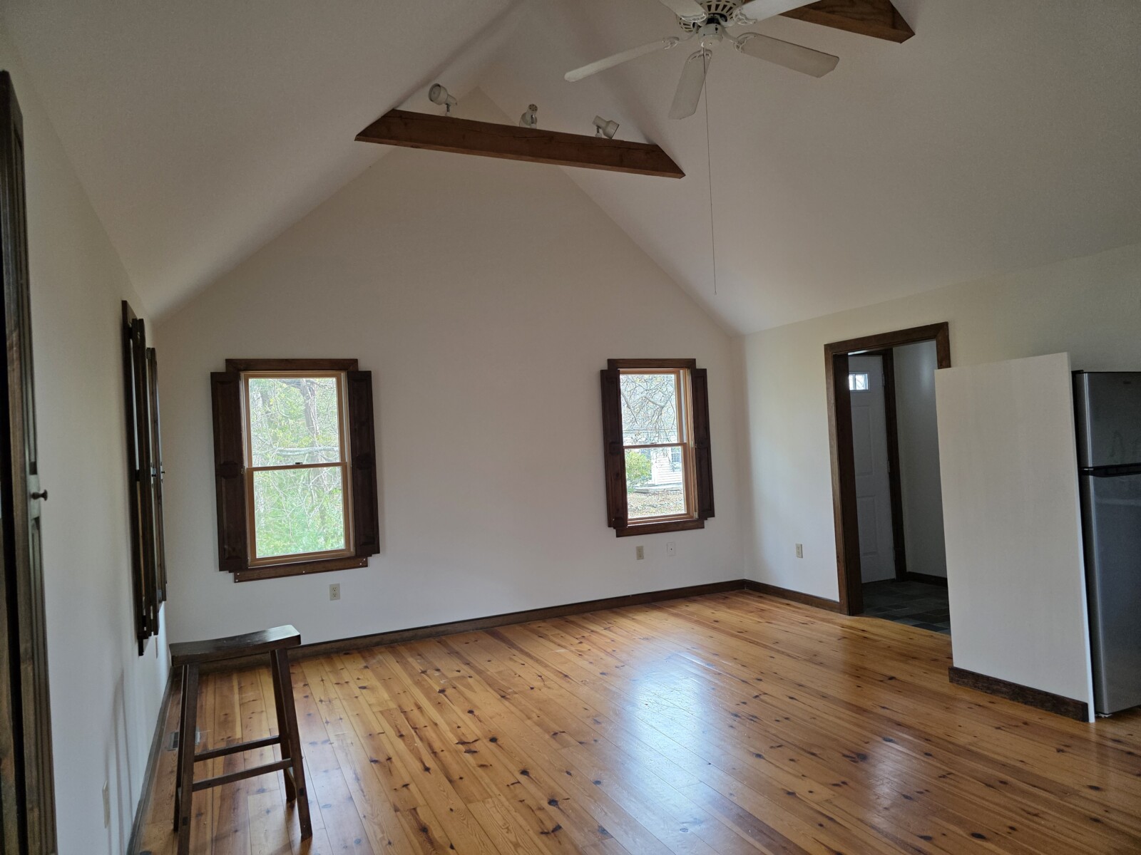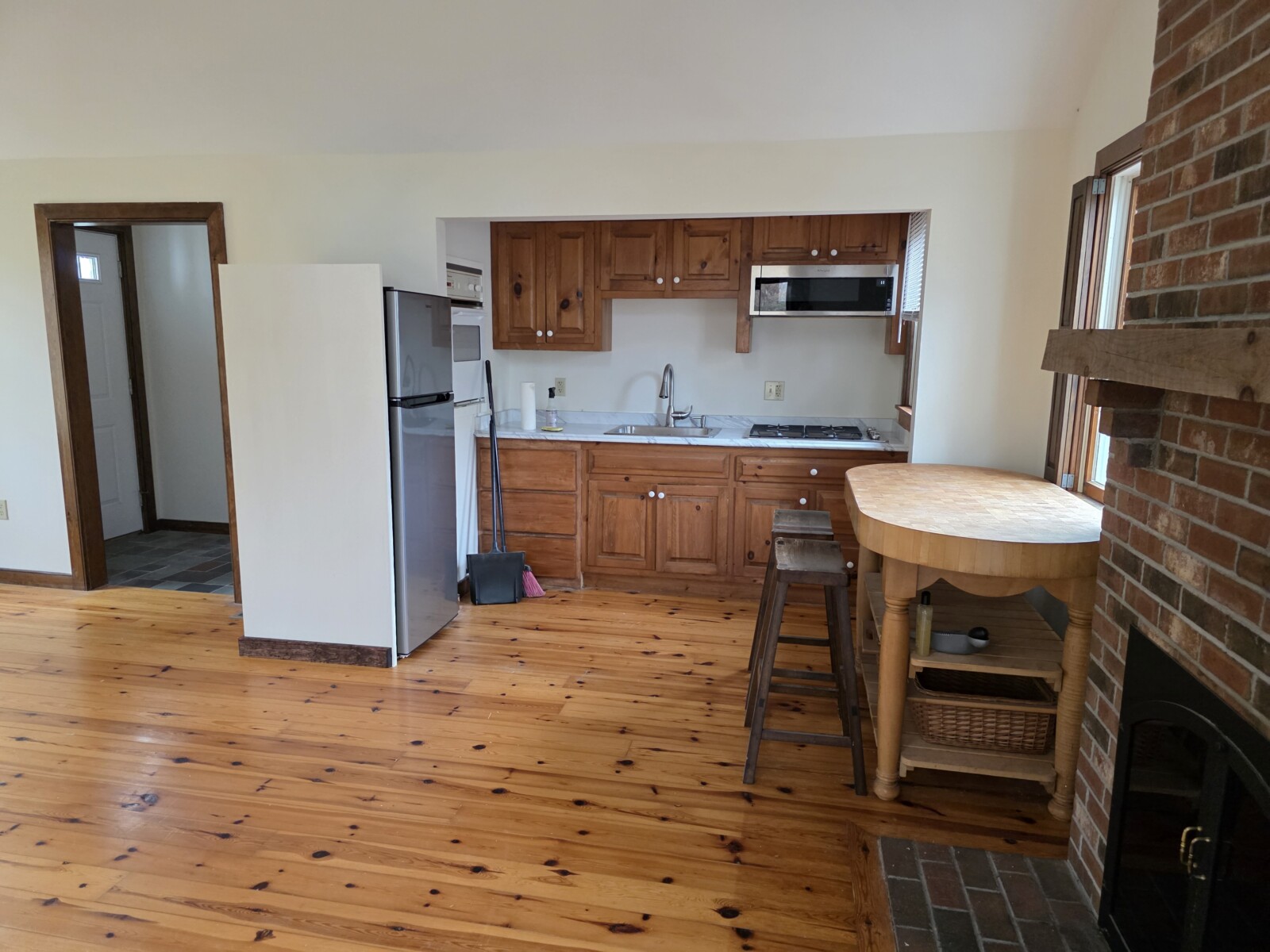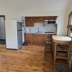 Freshly painted, bright, studio apartment with separate entrance and parking. Gorgeous location on quiet leafy road, 5 minutes by car from downtown Orleans and 5 minute walk to Town landing for boating and kayaking. Conservation trails for hiking nearby. Newly renovated kitchen includes new fixtures (counter, stove, microwave and fridge) Boos butcher block island. Large bathroom with shower stall and Jacuzi. Washer/dryer, A.C. Electricity included. Private deck overlooks backyard horse barn. No smoking, no pets please.